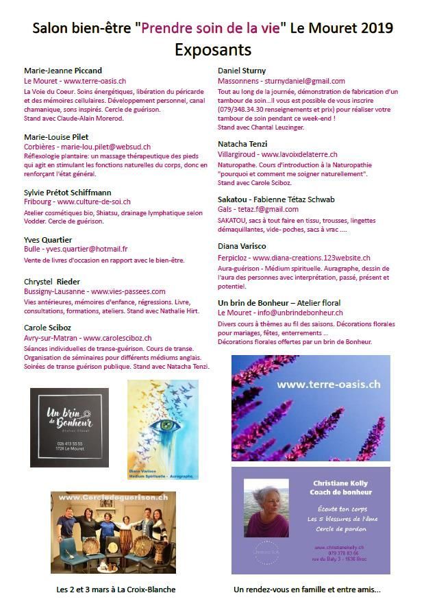 Thérapeute énergéticien, canal chamanique, libération du péricarde, Reiki. Cercle de Guérison. Distributeur OLIFE infusions de feuilles d'oliviers. Stand avec Marie-Jeanne Piccand.